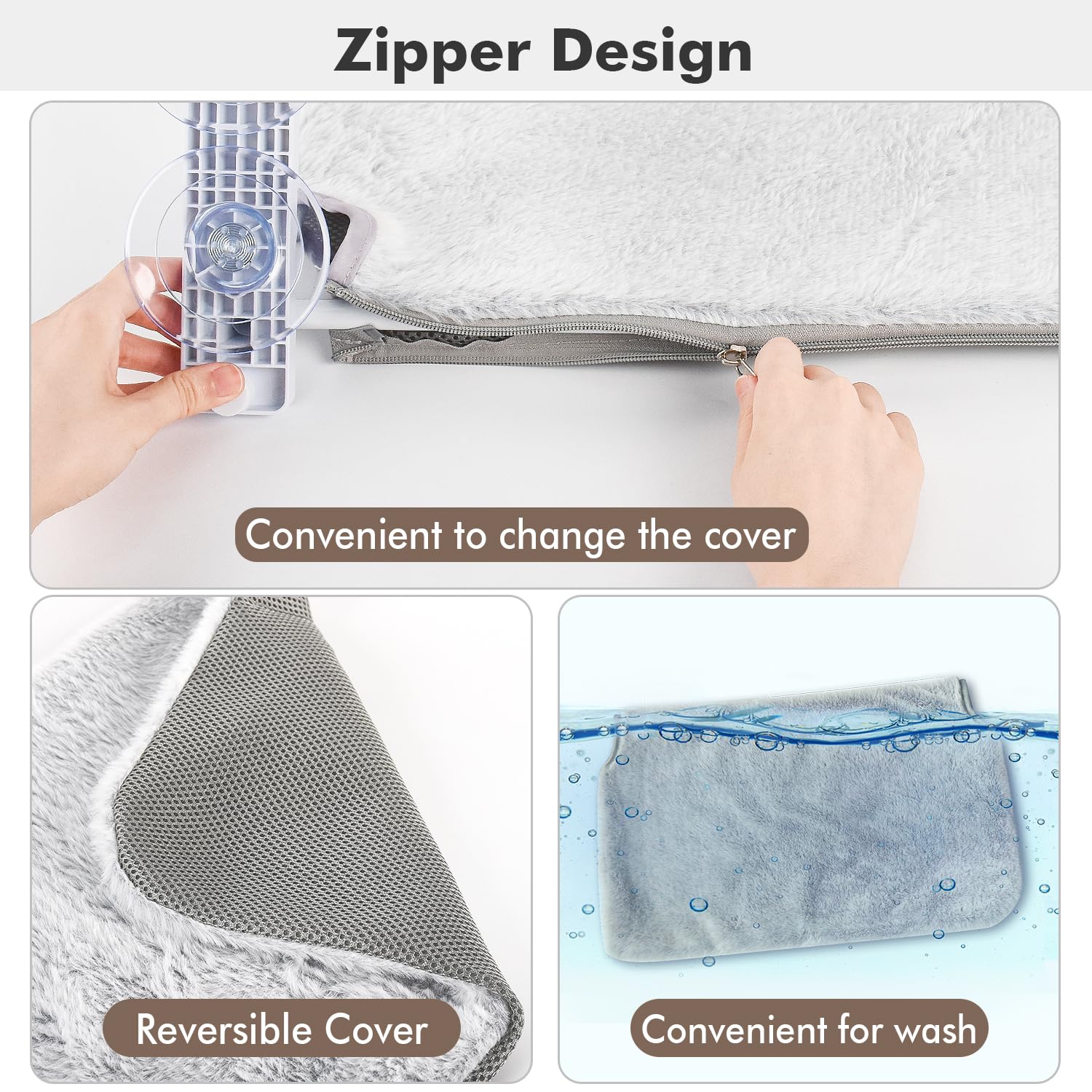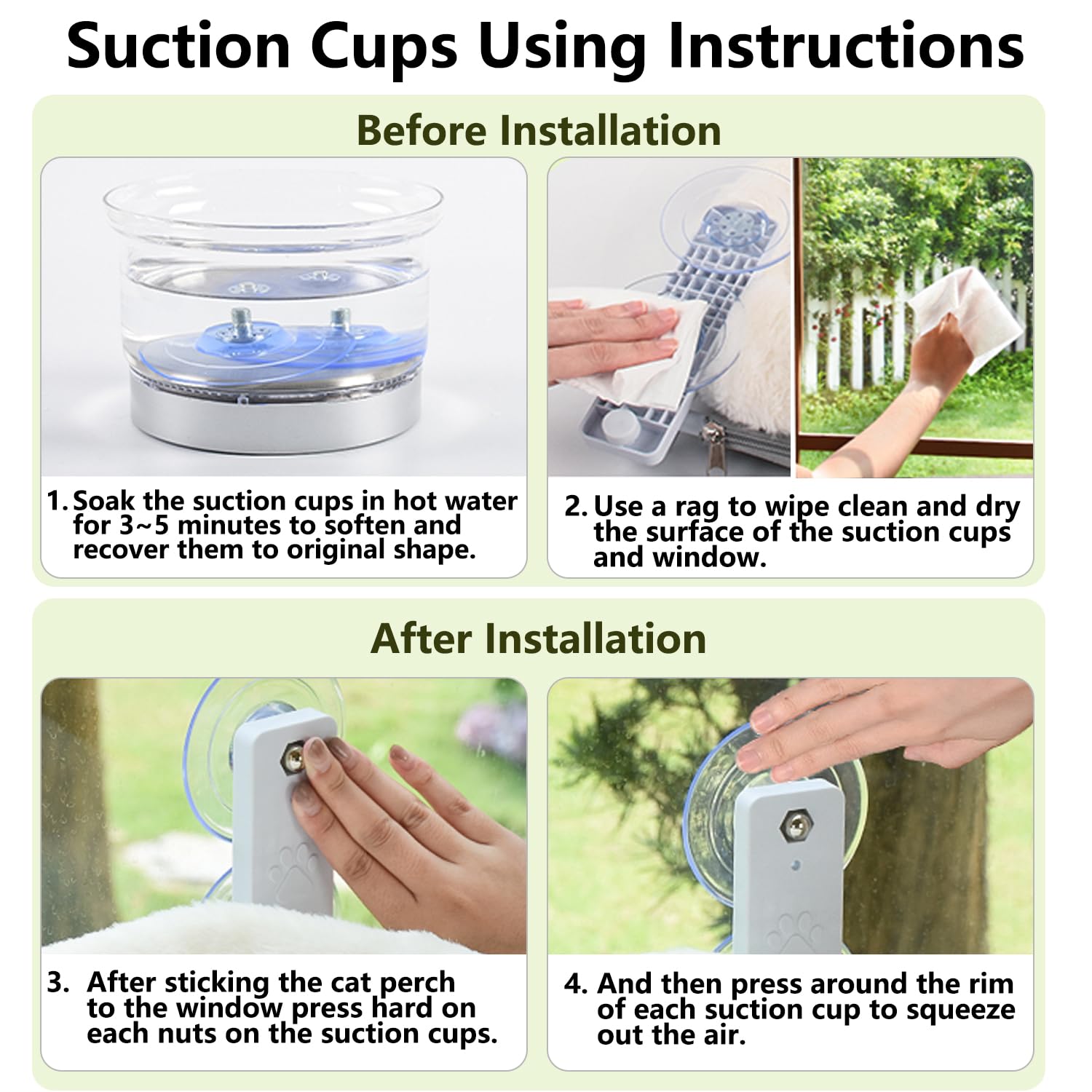 AMOSIJOY Cat Window Perch, Cat Hammock with 4 Strong Suction Cups, Solid Stainless Steel Frame and Two Replaceable Covers, Foldable Cat Beds for Indoor Cats