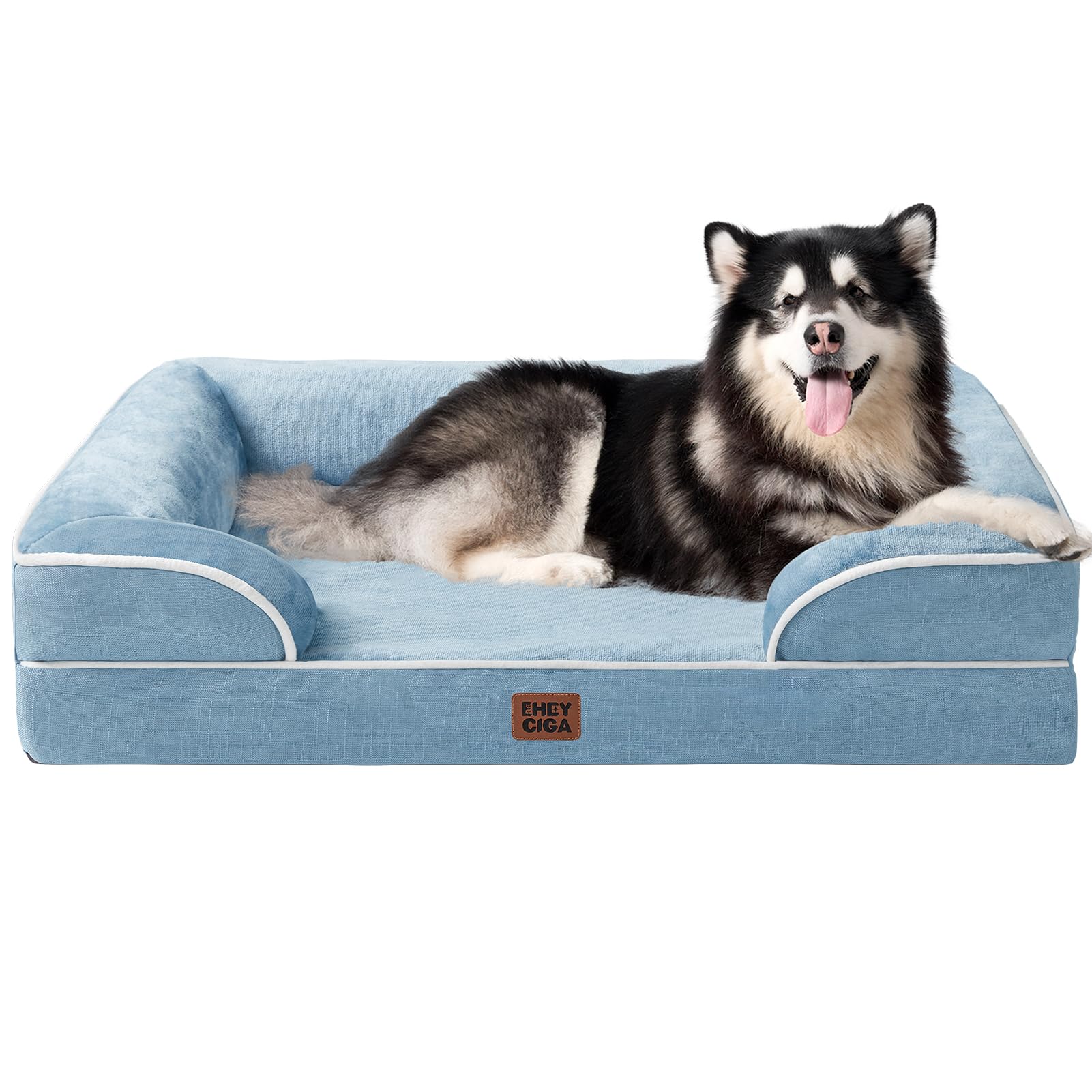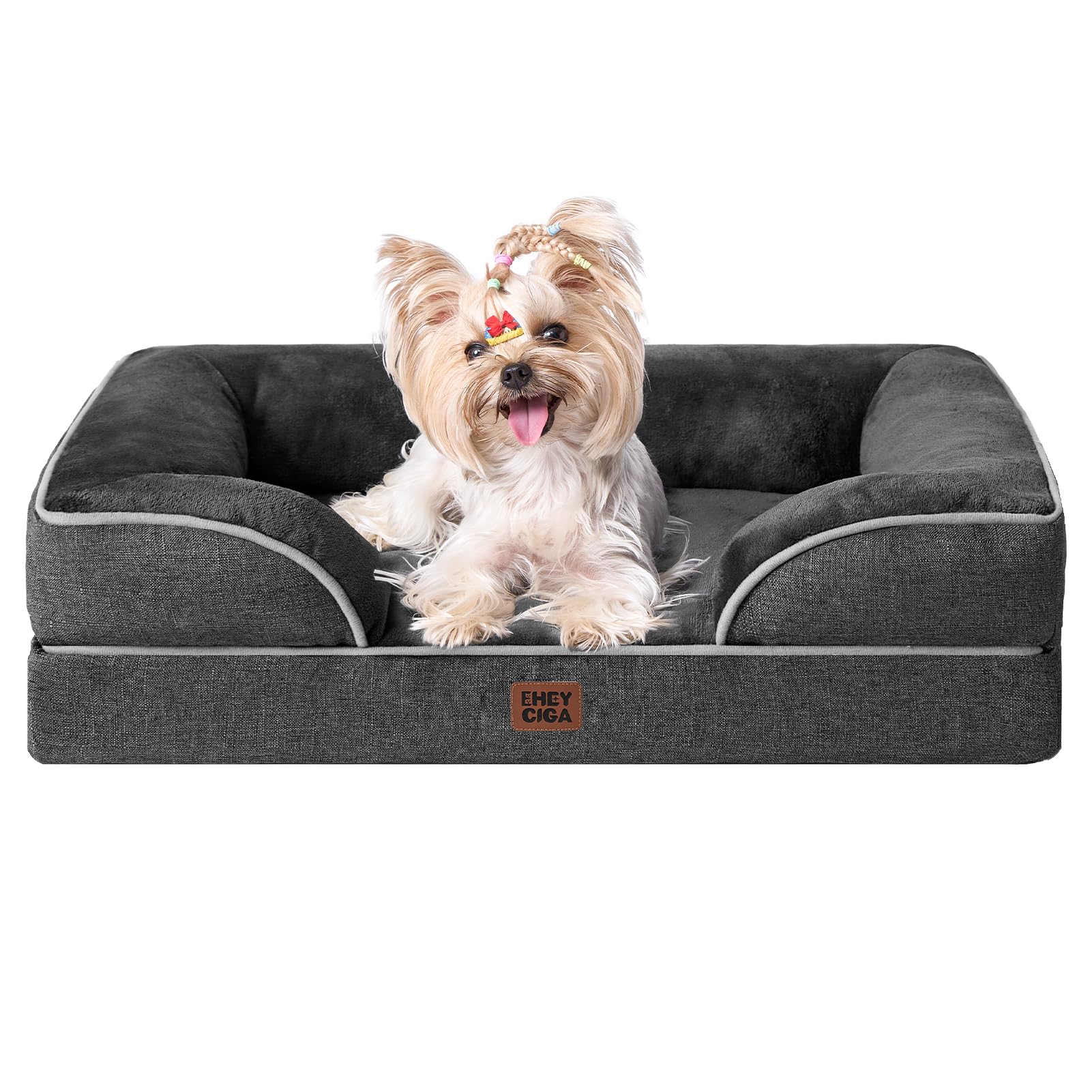 Give your dog the comfort they deserve with this orthopedic sofa bed. Featuring memory foam and egg crate foam, it provides excellent support and pressure relief—ideal for senior dogs with joint concerns. The 3-sided bolster design cradles your pet's neck and head for restful sleep. The fleece surface is soft and inviting, while the waterproof layer keeps moisture at bay. Available in medium, large, and extra-large sizes to fit any breed. The removable, machine-washable cover makes cleanup simple. Allow 24-48 hours for the bed to fully expand after unpacking.