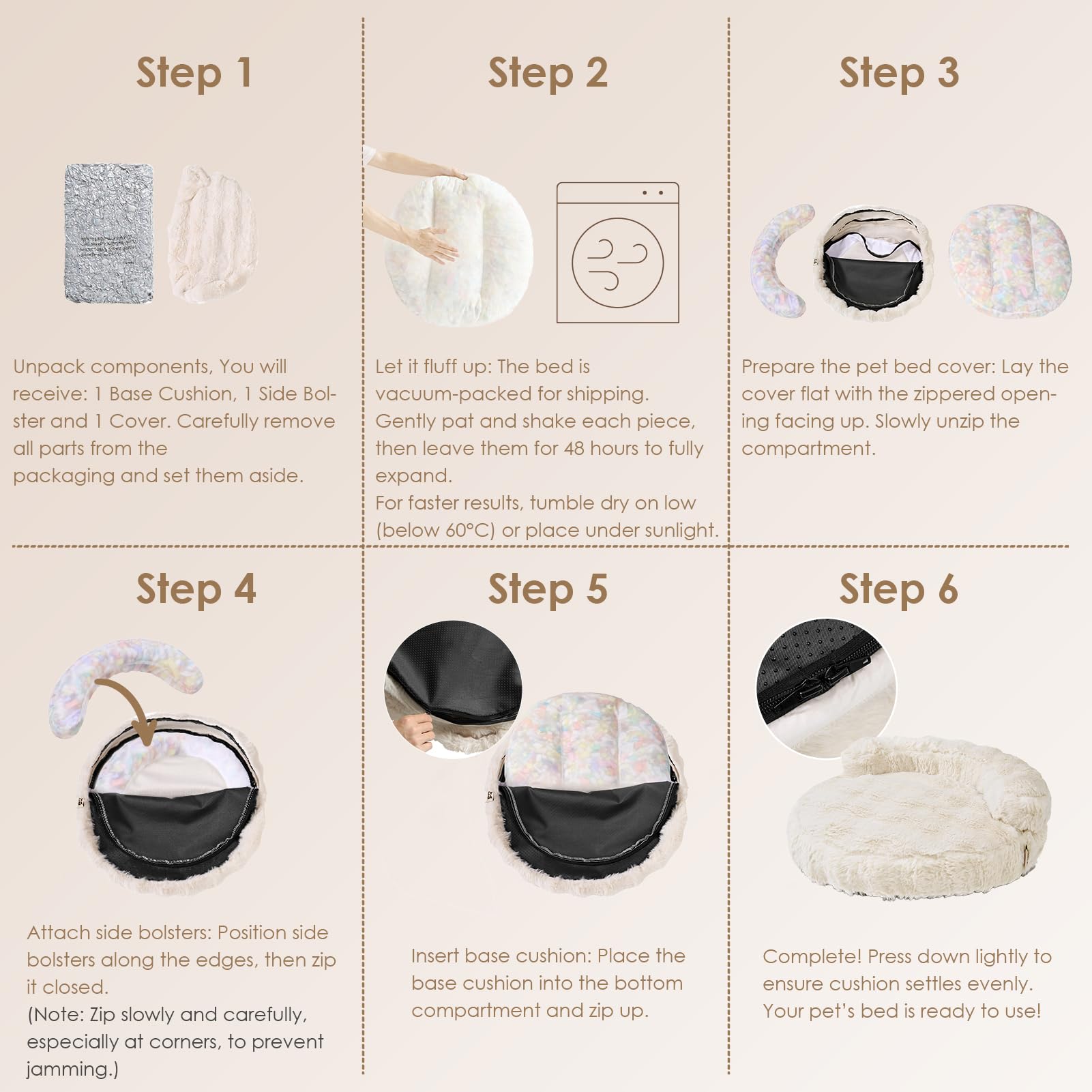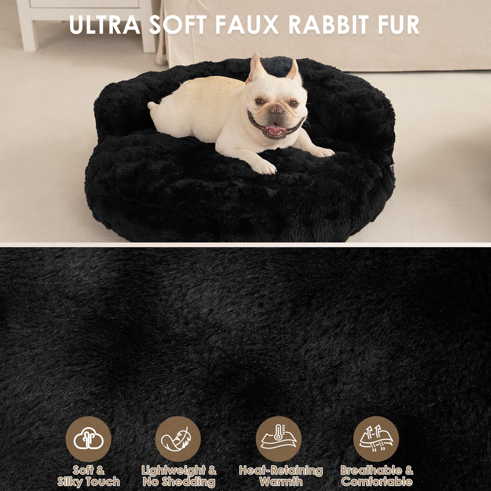 Cozy pet bed featuring ultra-soft faux rabbit fur and cloud-like foam support for cats and small dogs. The waterproof TPU lining protects against spills and accidents, while the removable, machine-washable cover makes cleanup effortless. Non-slip base keeps the bed stable on any floor, and the plush filling bounces back to shape within 48 hours. Stylish enough to complement any home décor while providing your pet with the comfort they deserve.
