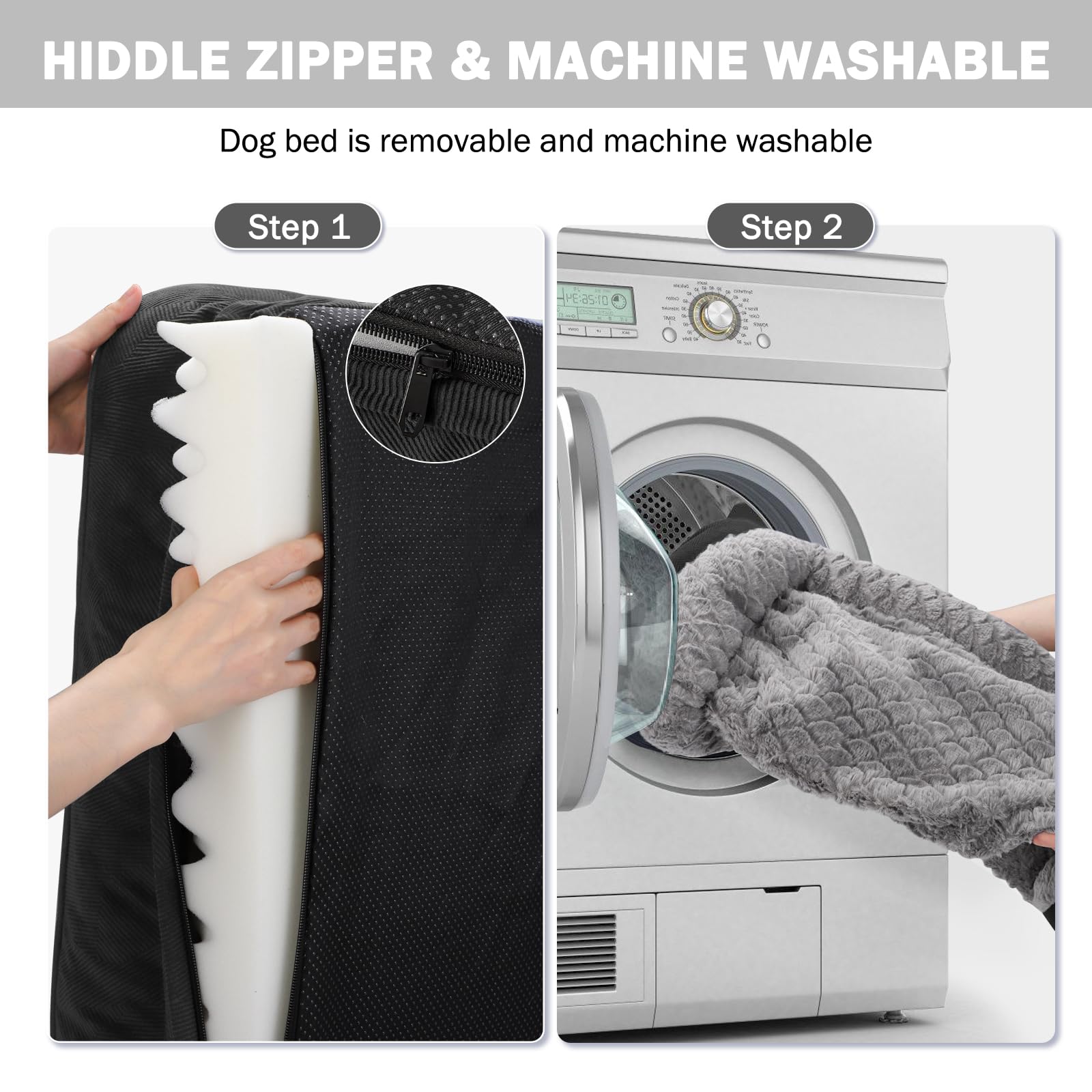 Give your large dog the comfort they deserve with this XL orthopedic sofa bed. The C-shaped chaise design with 3.5" side bolsters cradles your pet's neck, back, and joints for superior support. High-density egg crate foam distributes weight evenly and eases pressure on aching joints, promoting restful sleep. The plush fish scale pattern surface is soft, durable, and resists shedding. Machine-washable cover with zipper zips off easily for quick cleaning, while the waterproof inner lining protects against spills and accidents. Available in multiple sizes to fit dogs up to 120 lbs. A perfect retreat for senior dogs or those needing extra joint support.