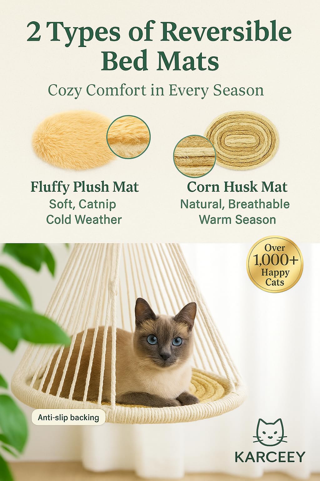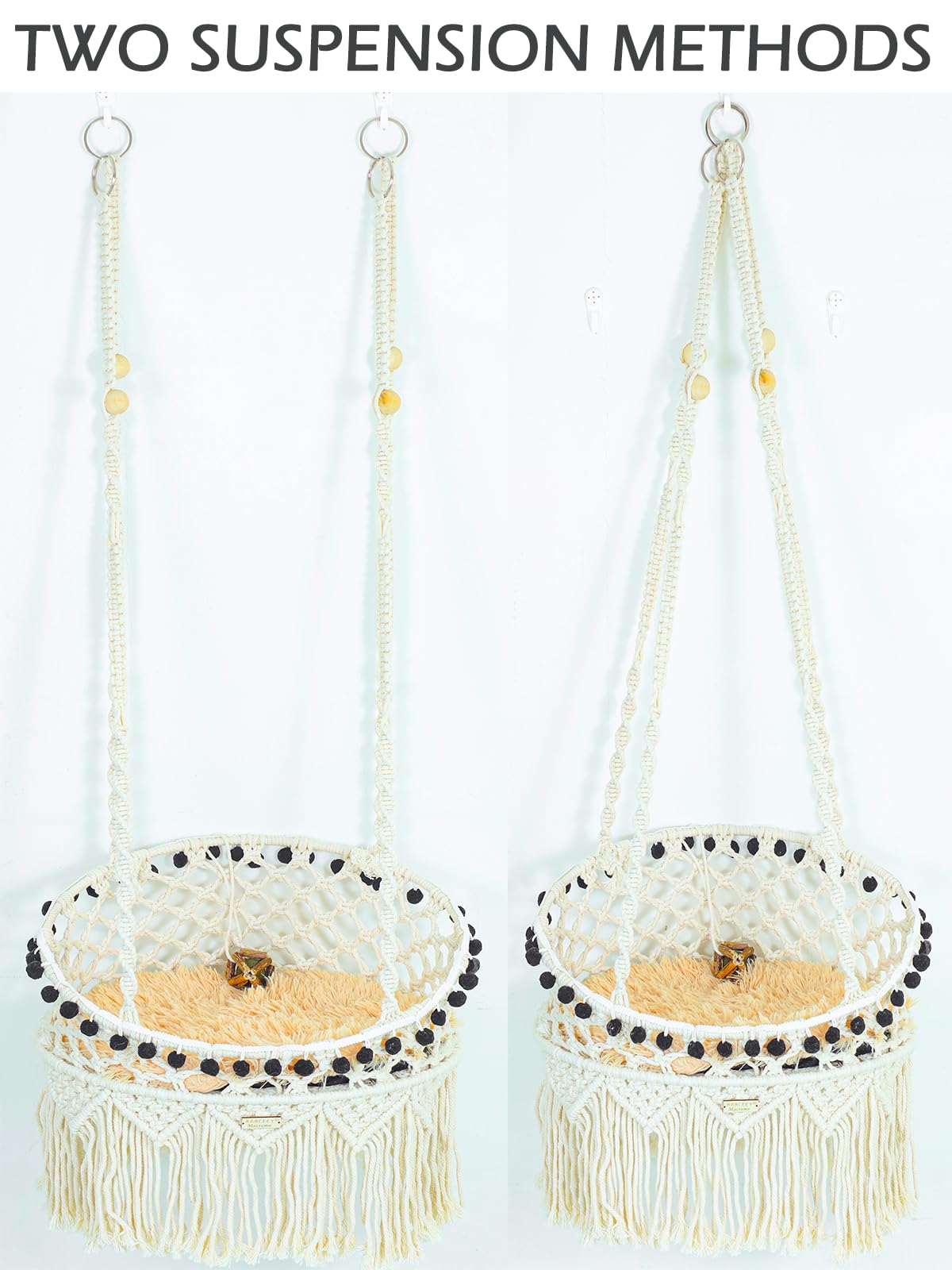 Macrame Hanging Cat Hammock Bed with Mat & Catnip Toys