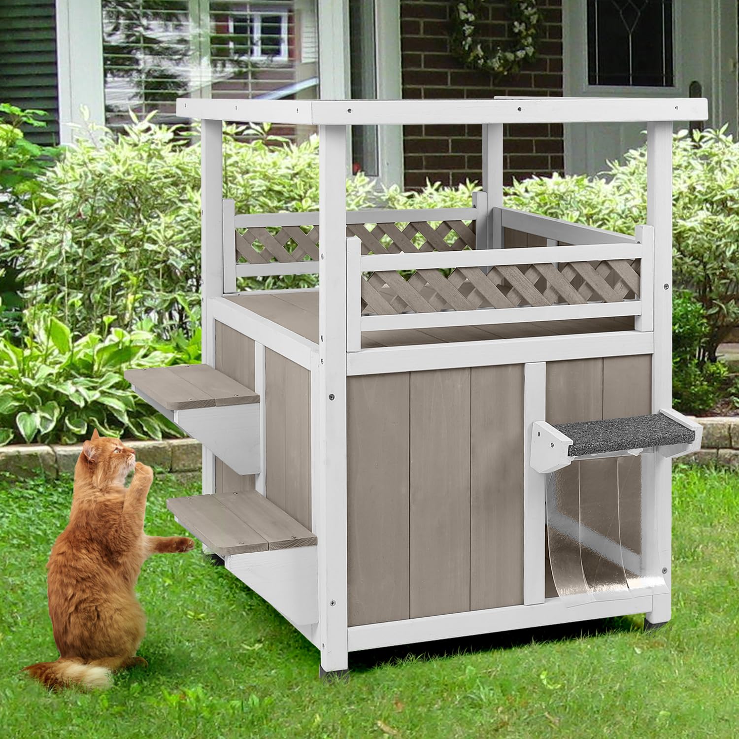 2-Story Outdoor Cat House with Balcony, Platforms & Openable Roof