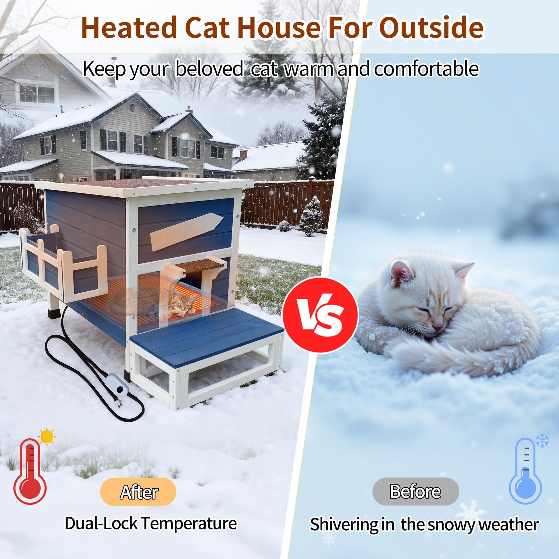 Weatherproof Outdoor Cat House with Escape Door & Wooden Shelter