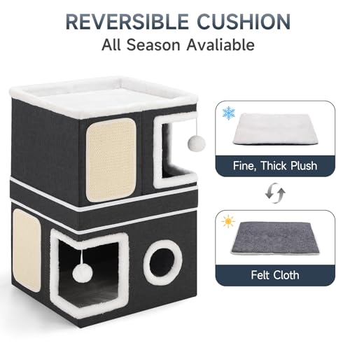 Large Cat Cave Bed with Round Window, Cushion & Cozy Hideaway Condo