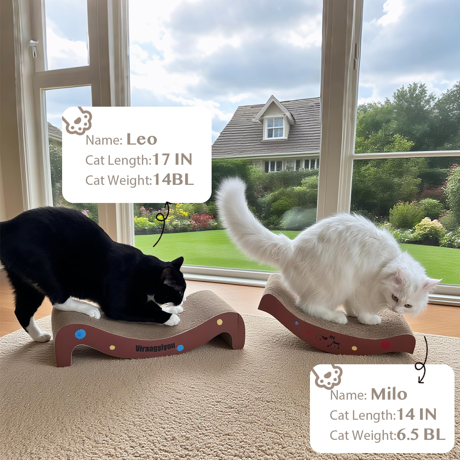 This 2-in-1 cat scratcher lounge combines a scratching surface with a cozy lounging spot in one piece. Made from durable corrugated cardboard, it withstands vigorous scratching while giving your cat a dedicated place to rest and play. The sturdy construction means fewer replacements and longer-lasting enjoyment for your feline friend.