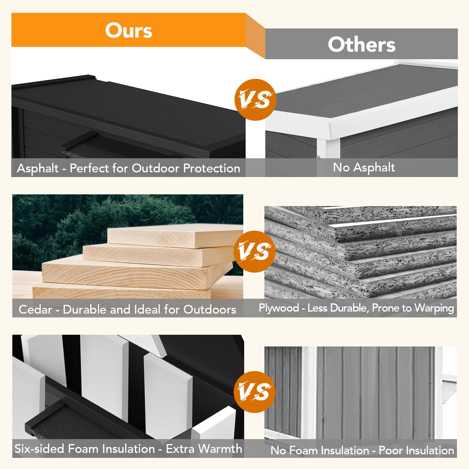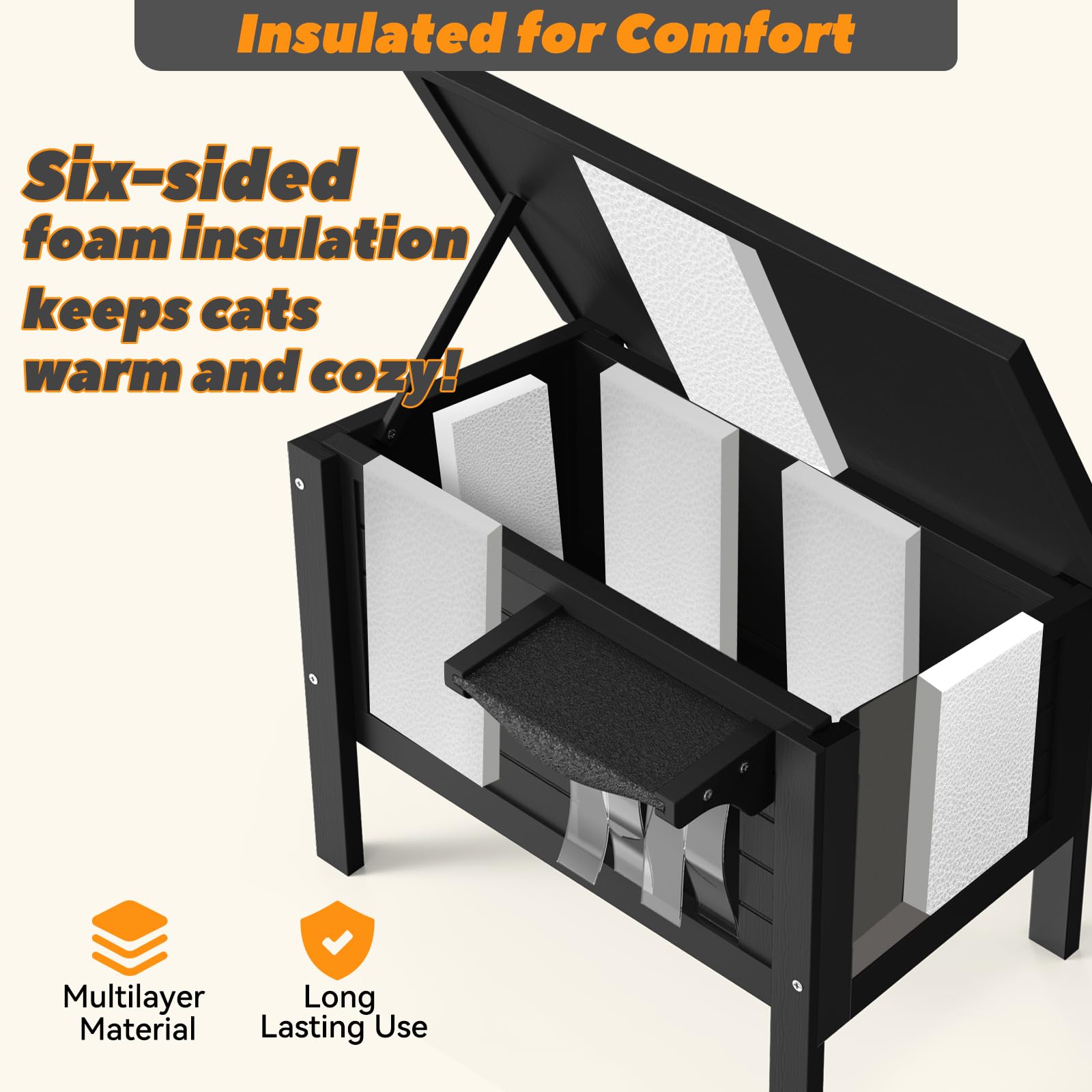 Insulated Outdoor Cat House Shelter for Multiple Cats, Solid Wood