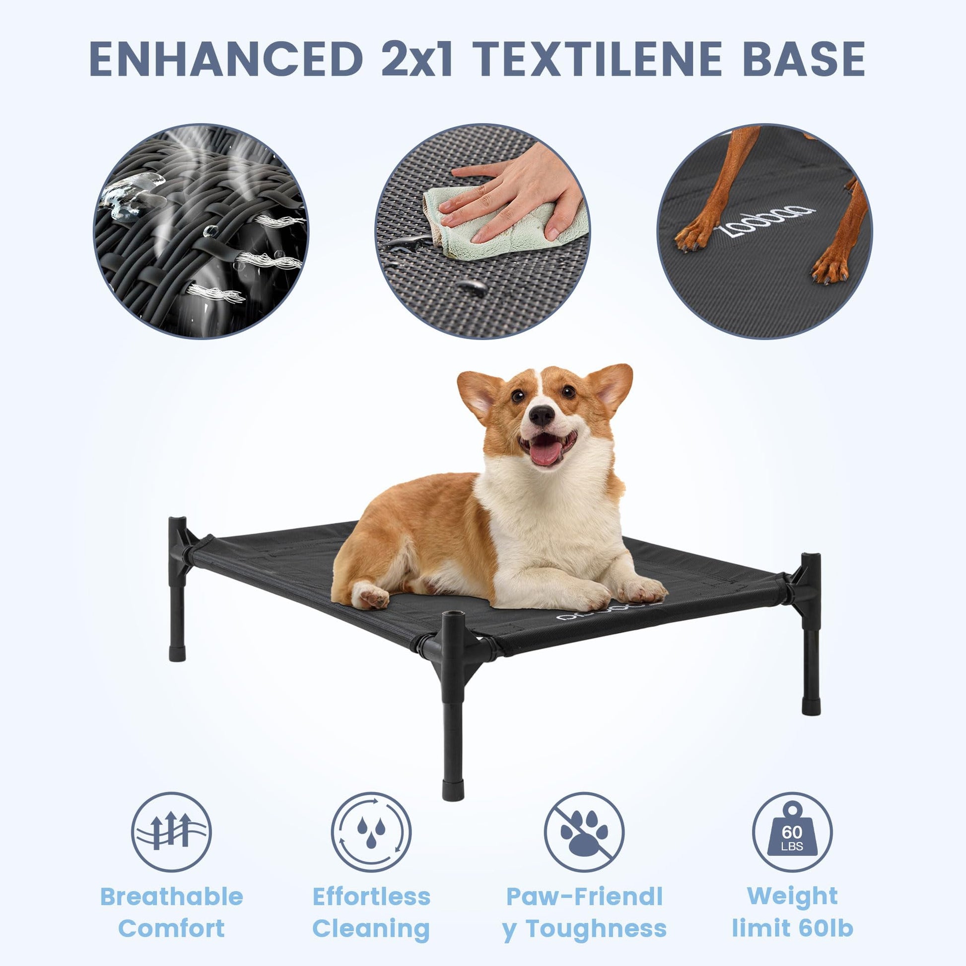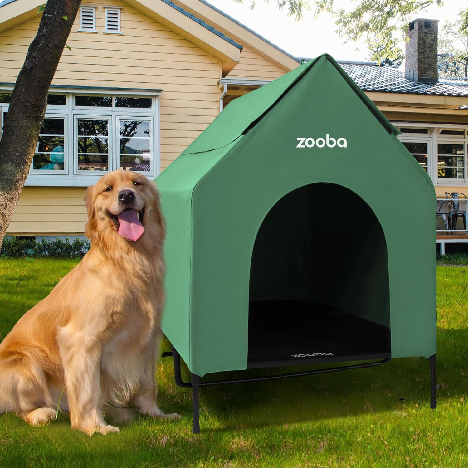 The Zooba Elevated Dog House provides a comfortable, durable retreat for small to large dogs. Built with a sturdy steel frame and elevated design, it keeps pets dry and off cold ground. The breathable 600D PVC mesh with Textilene bed promotes airflow while the waterproof coating protects against weather. Anti-skid feet ensure stability, and the scratch-resistant surface withstands active pets. Suitable for breeds like bulldogs, German shepherds, and collies. Easy to assemble and maintain with simple hose-down cleaning. Perfect for indoor or outdoor use year-round.